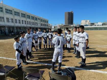 本日ブロック大会決勝トーナメントが行われました。初回に先制するもゲーム終盤に逆転され3-5で敗戦となりました。課題がたくさん見つかる試合となりました。次は春の大会に向けて1日1日を大切に練習を頑張りましょう。