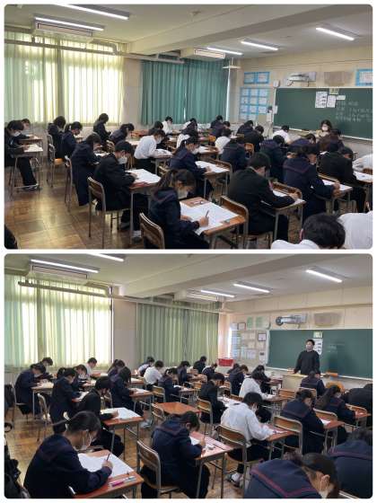 本日は国語、社会、保健体育のテストです。1年生の様子です。