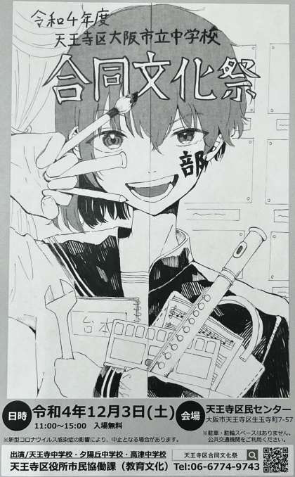 本日は、天王寺区民センターで天王寺区大阪市立中学校合同文化祭が行われます。