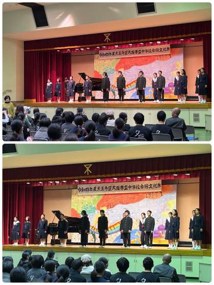 合唱部は、天王寺中学校合唱部の人たちと合同で歌いました。