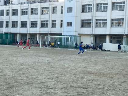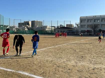 ガンバカップ中体連予選が十三中学校で行われ、5-0で勝利しました。この調子で、次もがんばります!