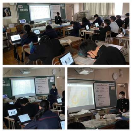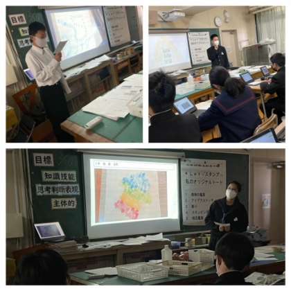 イメージしたデザインを布インクで創意工夫しながらスタンピングし、トートバッグが完成しました。模様に込めた思いや色や形、構成で工夫した点を発表しました。