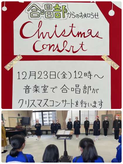 合唱部がクリスマスコンサートを行いました。