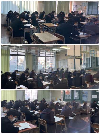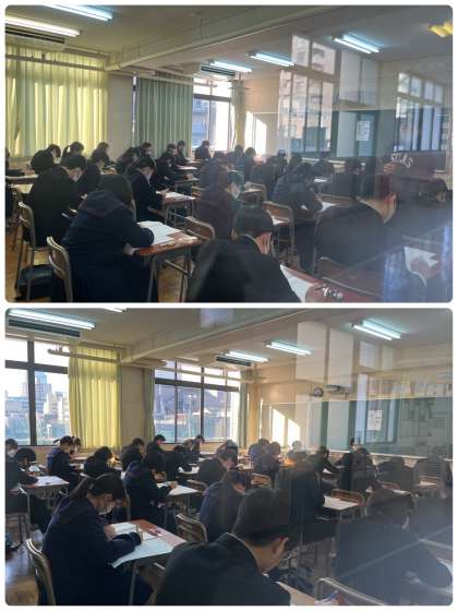 3年生は実力テストの2日目です。本日は理科、数学のテストです。
