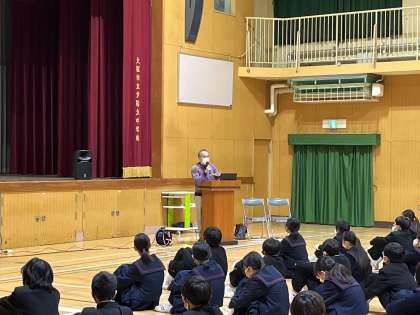 話をされた天王寺警察の方は、1年生が話を聞く様子に「本当に『ピシッ』としていますね。」とお褒めの言葉をいただきました。