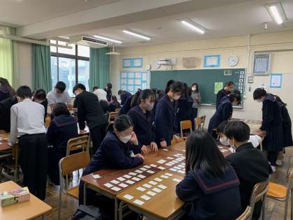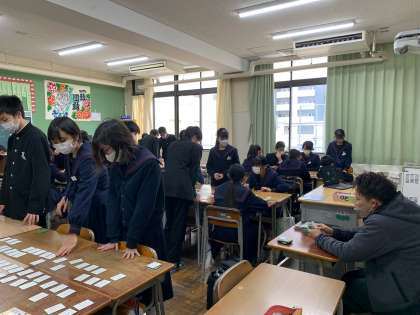 1年生は来週の百人一首大会に向けて各クラスで練習に取り組んでいます。
