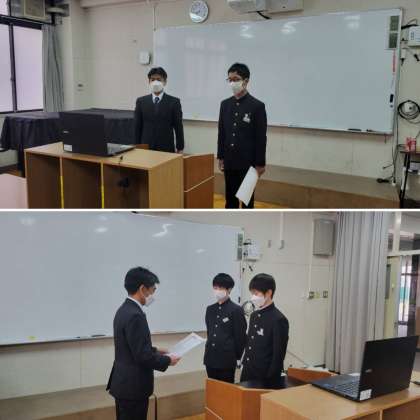 その後、バドミントン部の表彰と、各委員会より今月の目標の発表がありました。
