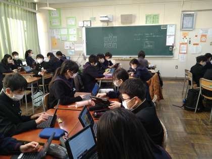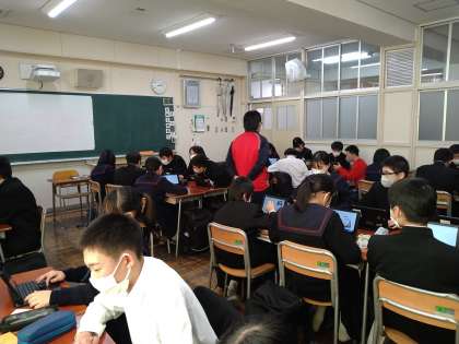 地球の平和を守るために私たちができることは何か。まずは他の国のことをよく知ること。そのための異文化理解の調べ学習をグループで始めました。
