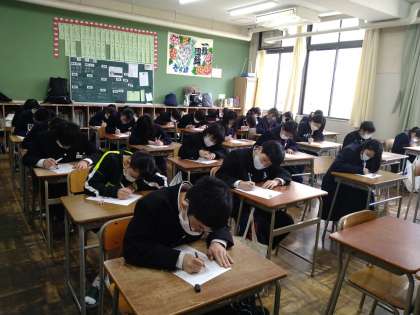 小テストの結果が100点ではなかった人が挑戦しています。満点目指して、前回の自分を超えていけ!