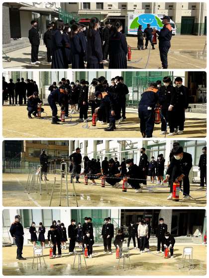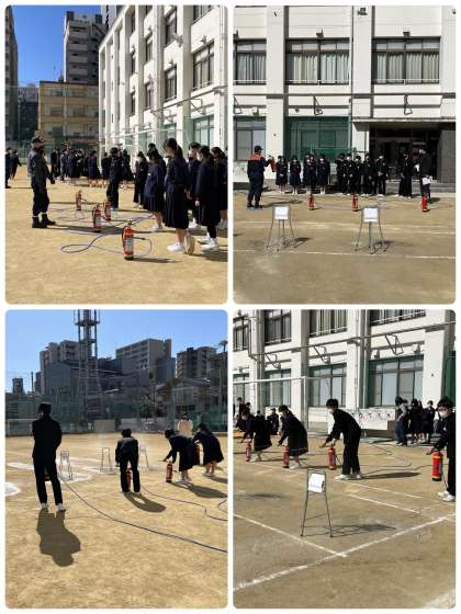 こちらは水消火器による消火訓練です。設置された的をめがけて水を放ちました。