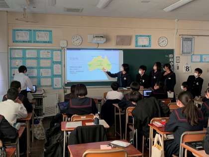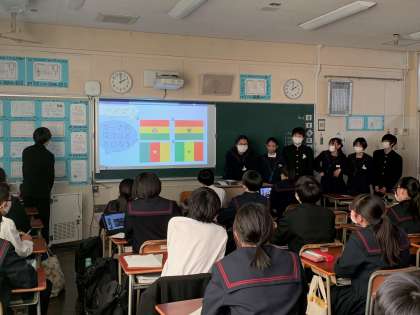 班ごとに調べた国についてしっかりと発表ができていて、しっかりと日本以外の国について理解ができたようです。