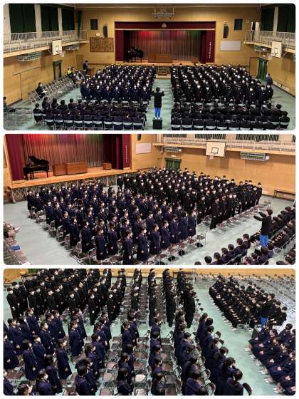 在校生代表の人たちも予行に参加しました。先輩が卒業していく姿を目に焼き付け、良き伝統を引き継いでほしいです。