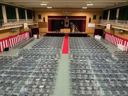 9時55分に卒業生の入場を予定していますので、保護者の皆様はそれまでに式場にご入場ください。