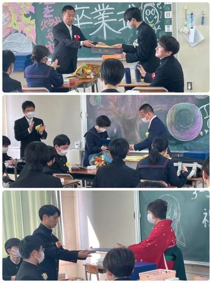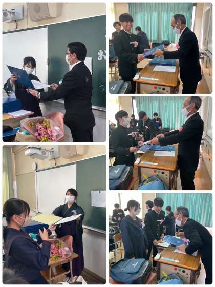 教室に戻り、学活です。担任の先生から卒業証書を受け取りました。