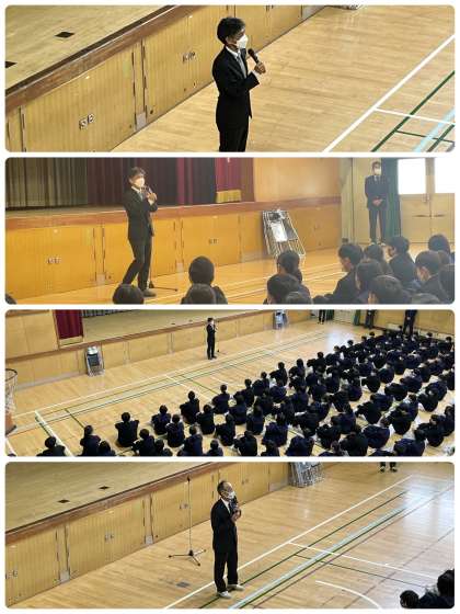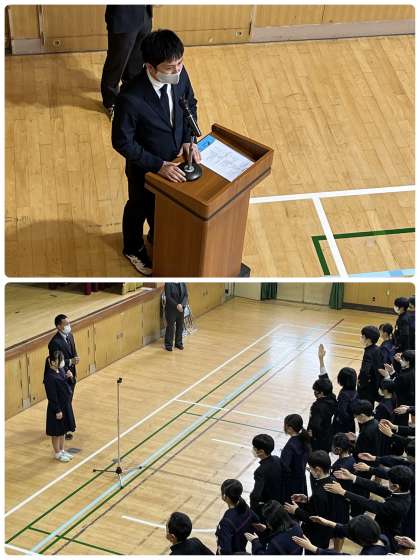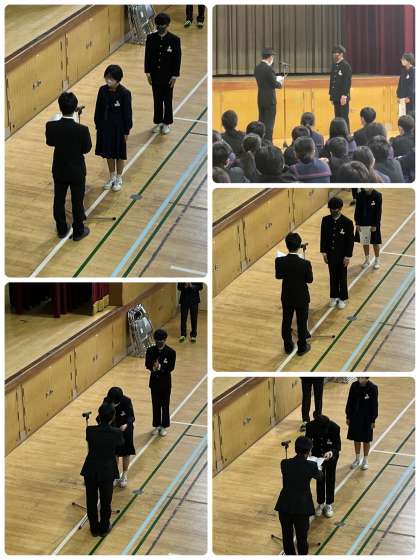 1年、2年それぞれの代表生徒に校長先生から修了証が手渡されました。