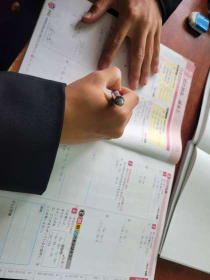 先生の説明を聞いてから教科書の問題を解いて、さらに問題集にも取り組み、定着をはかりました。