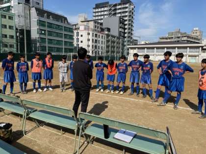 大阪市春季サッカー大会が今宮中学校で行われました。後半開始すぐに失点をした後、何度も相手ゴールに迫る場面を作りましたが、最後まで得点できず、0-1で敗れてしまいました。