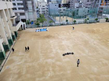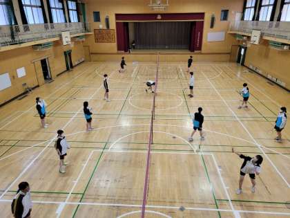 早朝より、グラウンドでは陸上部が、体育館ではバドミントン部が朝練をしています。