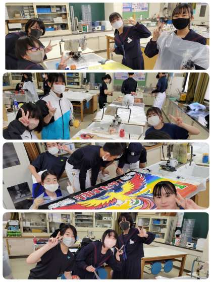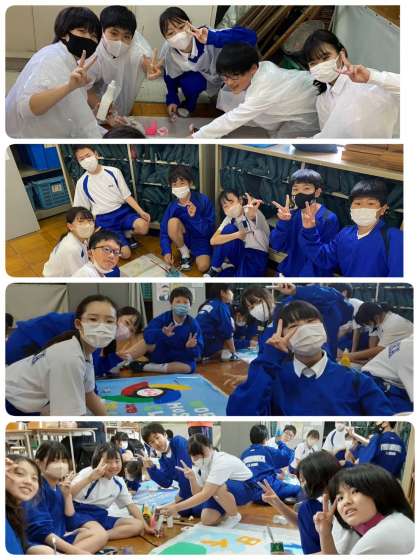 午後の時間を利用して、体育大会の学級旗づくりを行っています。各クラス協力しながら作成していますが、とても楽しそうです。