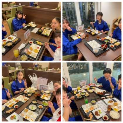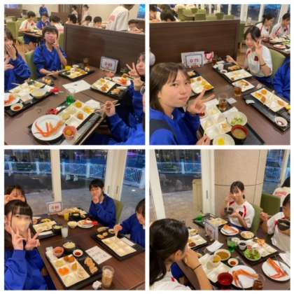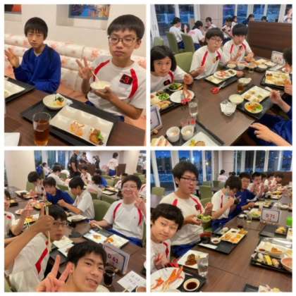 ホテルレオマの森での食事風景1です。食べ放題のビュッフェ形式です。みんなおなかいっぱい食べています。