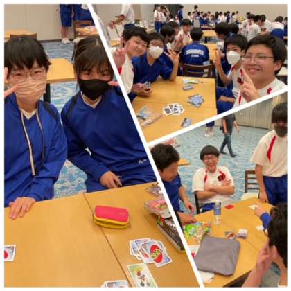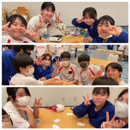 食事とお風呂の後、就寝の時間まではフリータイムです。トランプなどのカードゲームで盛り上がっています!