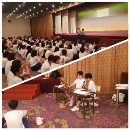 次はヒントを頼りに先生をあてるクイズです。みんか真剣に考えています。