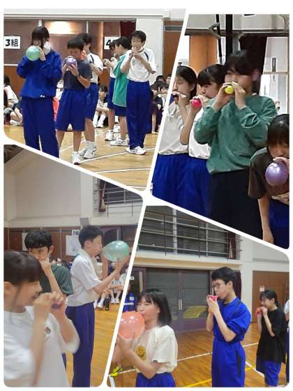 膨らました風船を遠くに飛ばしたクラスの勝ちです
