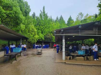 野外炊飯が始まりました。