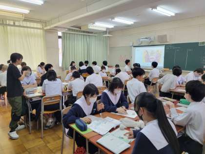 SNSの記事から、どんな危険が潜んでいるかグループで話し合っています。