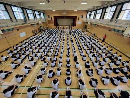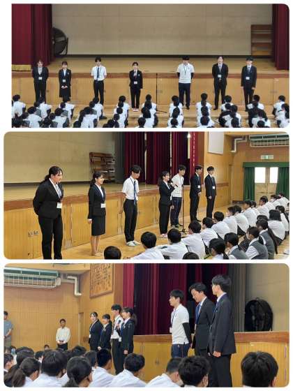 臨時で全校集会がおこなわれ、実習生代表から挨拶がありました。