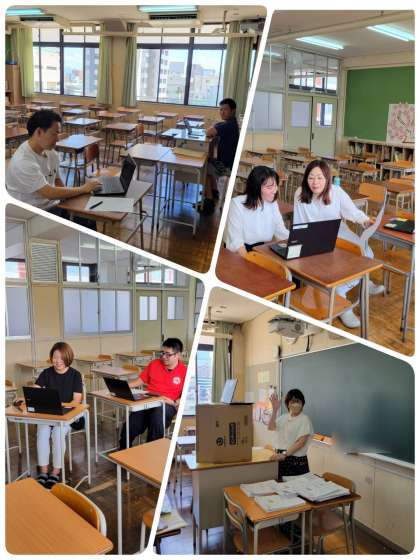 各クラスで問題を出したりアンケートをとったりして、通信テストを行いました。