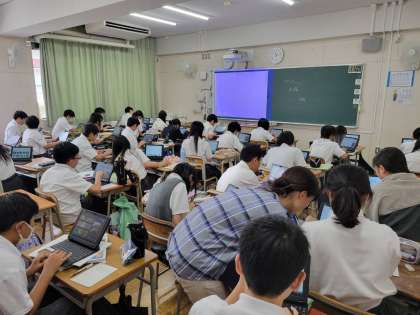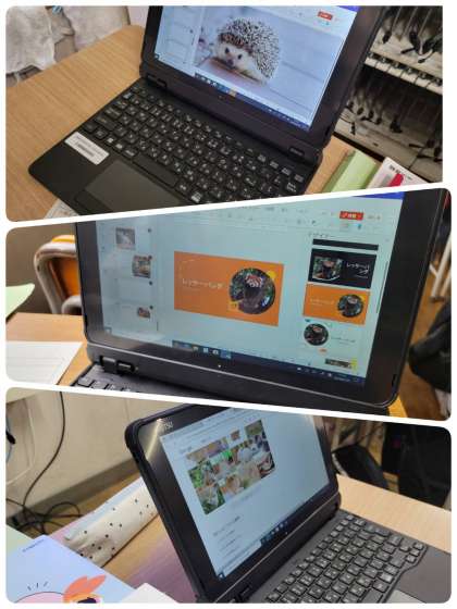 自分で決めた生物について調べてパワーポイントにまとめ、クラス全体で共有する活動を行っています。