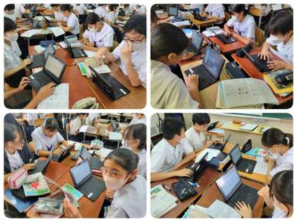 班ごとに共同編集でパワーポイントを作成しています。