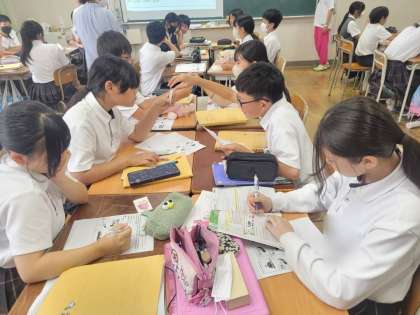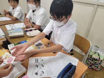 Can I〜?、Can you 〜?の学習をしました。班に分かれて、ゲームを行い学びを深めました。