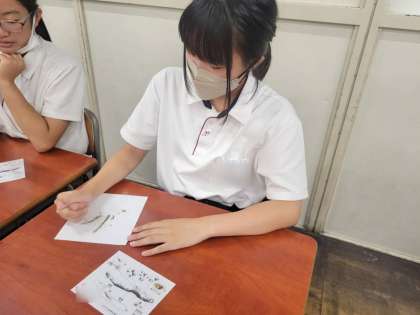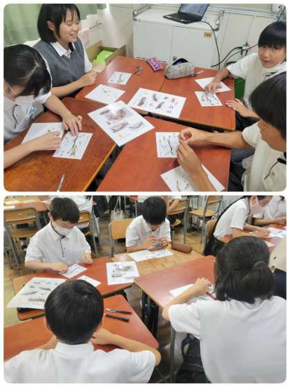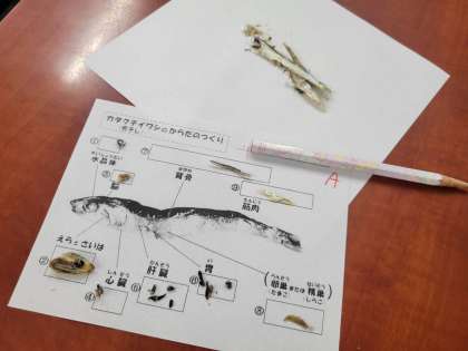 班のメンバーと協力しながら、カタクチイワシのからだのつくりを調べました。