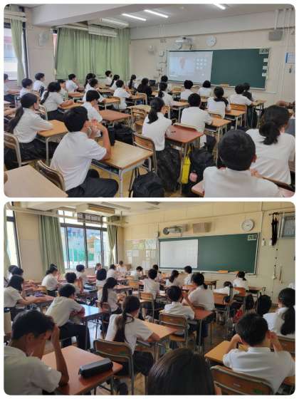 天王寺警察署から刑事さんにおこしいただき、過ごし方の注意点をお話いただいたあと、校長先生のお話がありました。