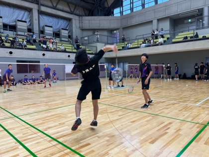 猛暑の中、豊中市立千里体育館にて、バドミントンの選手権大会(男子)に出場しました。