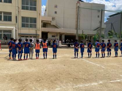 大阪市秋季サッカー大会4B予選が喜連中学校で行われました。勝てば決勝トーナメント進出が決まります。最初はうまくいかない場面がありましたが、保護者をはじめたくさんの方々から応援をもらい、8-1で勝利しました。