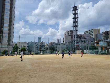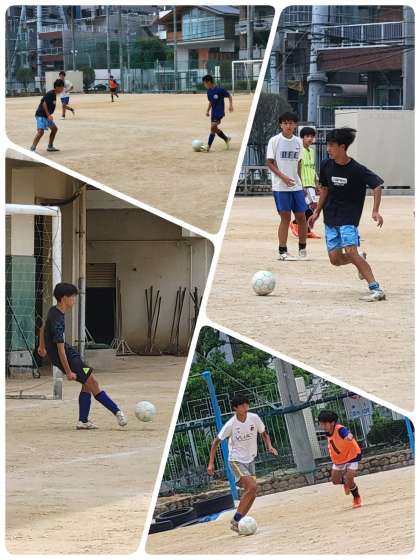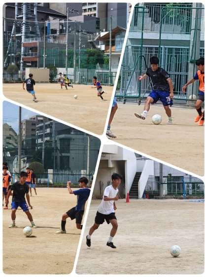 サッカー部の練習にお邪魔しました。卒業生の先輩が来てくれてゲーム練習の相手をしてくれました。先輩にはまだまだかないませんが、大会前にとても良い練習ができました。