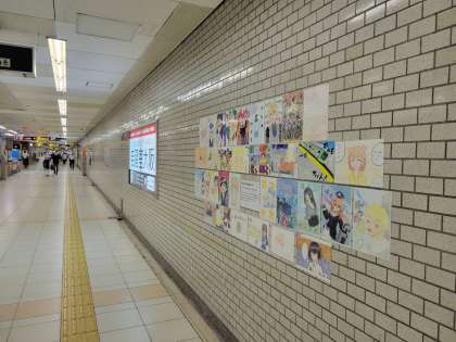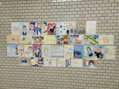 夕陽丘中学校美術部の作品が、地下鉄谷町九丁目駅の通路に展示されています。