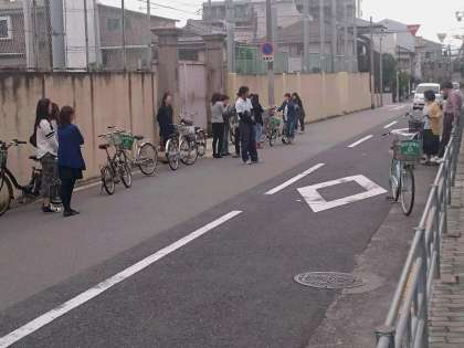 毎回、たくさんのPTA地域校外委員の皆さんが参加してくださり、生徒たちの登校を見守ってくださっています。