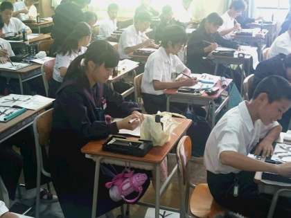 今日は書道をしています。心を落ち着け、集中して、字を書いていました。