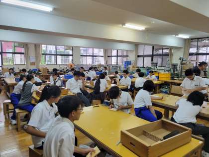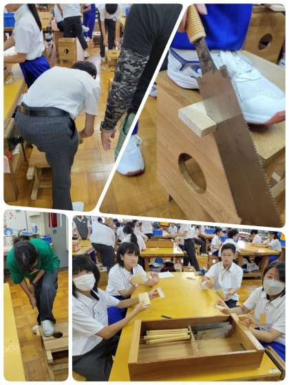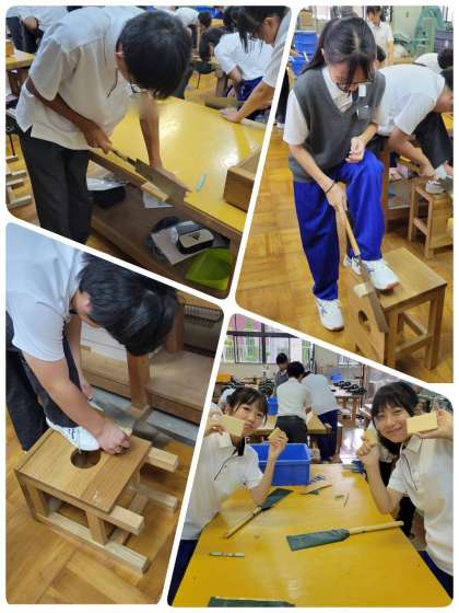木材加工を学習しています。不慣れながらも、なんとか切断できていました。