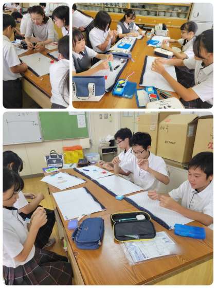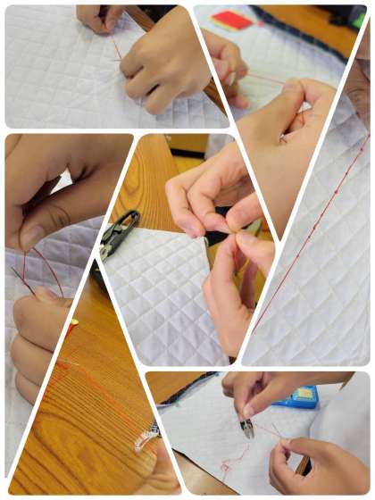 裁縫の実習に入りました。このときは、玉止めの練習をしていました。班のメンバーで協力しながら、みんなできるようになっていました。