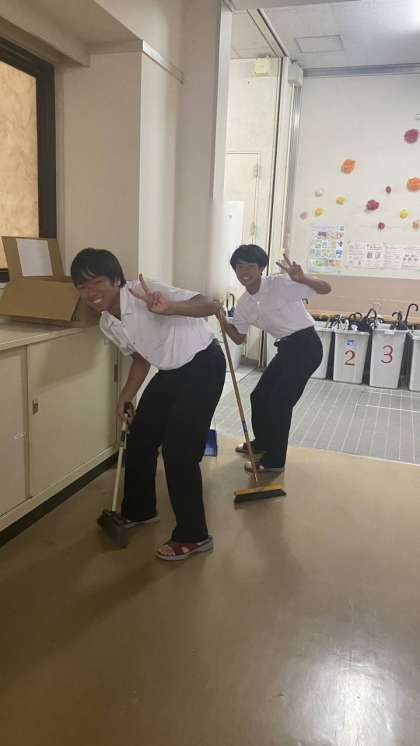 技術室前に木くずが散らかっていたのを、掃除してくれました。ありがとう。