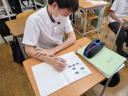 音について学習しています。この時はオシロスコープの波形について学習していました。振幅が大きいと音が大きく、振動数が多いと音が高くなります。これはかなり大切ですと先生がおっしゃってました!中間テストに出るかもしれませんね。