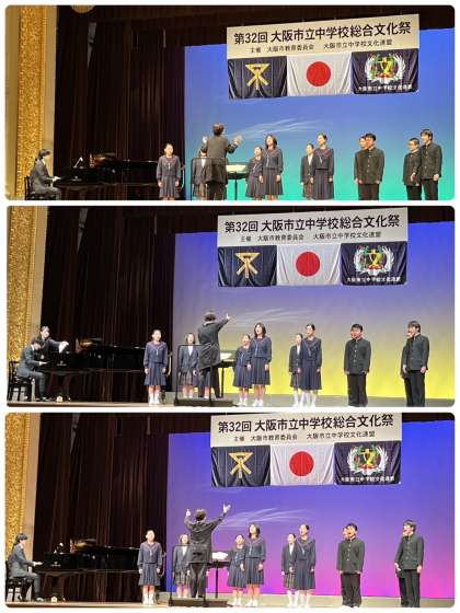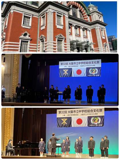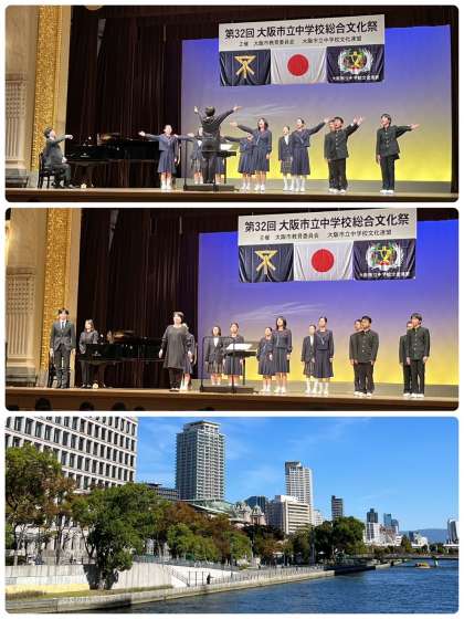 本日、合唱部は大阪市中央公会堂に出向き、第32回大阪市立中学校総合文化祭総合発表会に出演しました。