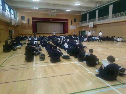 ほとんどの部で3年生が引退し、2年生と1年生の新体制で部活動を行っています。新体制での活動にあたり、部活動での規範意識の徹底を図るため、放課後に新体制一斉部活動会議を行いました。