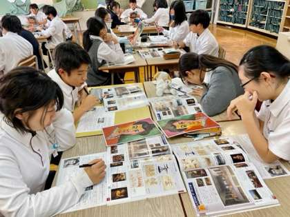 ?ルネサンス絵画と20世紀の画家の絵画を比較しました。ルネサンス時代の見たものそのまま描いている絵が素晴らしい絵だと思われていました。その概念を壊していった20世紀の画家たちのエネルギーを感じとり、アートの価値について考え、意見を出しあいました。