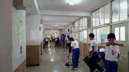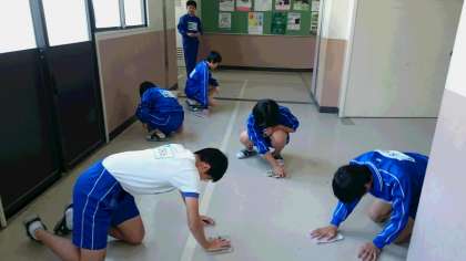 土曜授業として、クリーンアップ大作戦を行いました。地域の方や保護者の方の協力を得て、生徒と一緒に学校中の大清掃を行いました。ダスキンの方からほうきや雑巾の使い方を指導していただき、清掃活動に取り組みました。本当に丁寧にすみずみまで、きれいにしました。ご協力いただいた皆様、ありがとうございました。